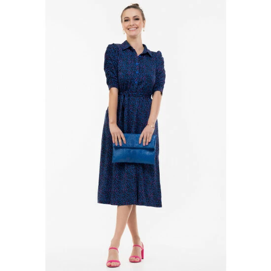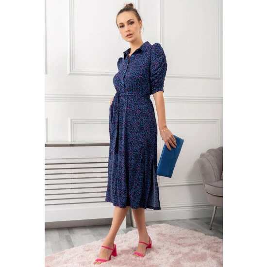 Cut from a premium jersey fabric, this stunning dress from Jolie Moi is a smart addition to your new season wardrobe. This statement piece is framed by a smart shirt collar, button fastening front and flattering ruched elbow-length sleeves. Completed with two side pockets and a self-tie belt which adds waist definition.