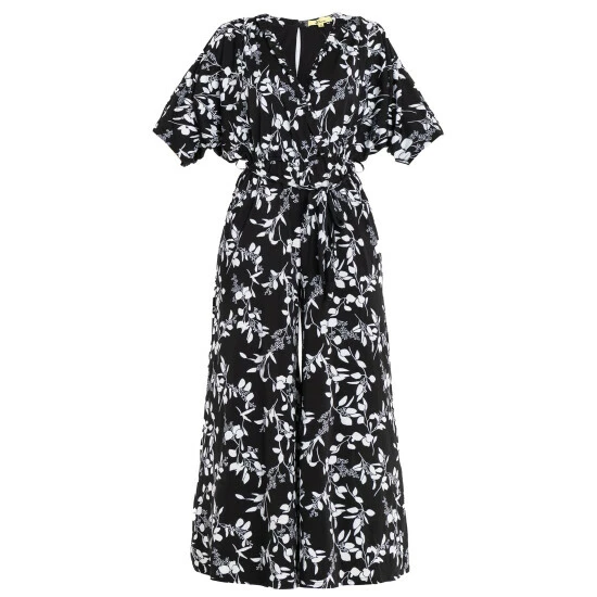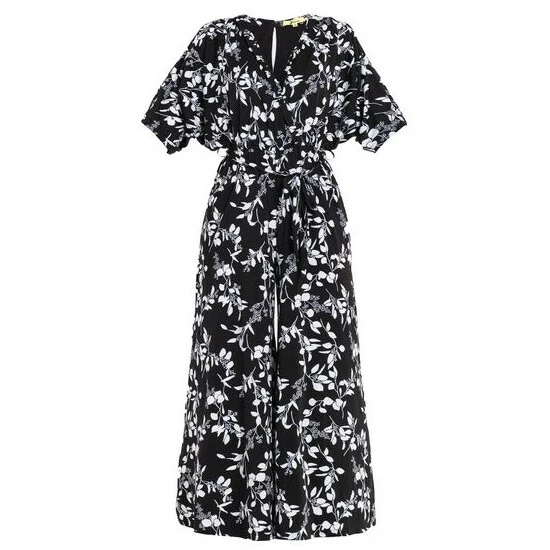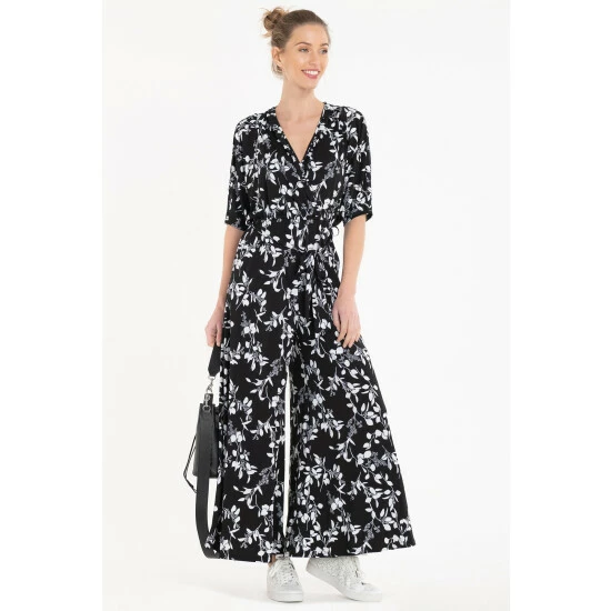 Effortless style made easy, this jumpsuit from Jolie Moi can be dressed up or down for any occasion. Designed with a bold mono floral print throughout, this piece blends a loose-fitting wrap bodice with batwing sleeves that create a flattering and feminine look. The elasticated waistline with a self-tie belt adds definition before flowing down into wide-leg trousers. Completed with two side pockets and partially lined, it matches equally well with trainers, pumps and sandals.