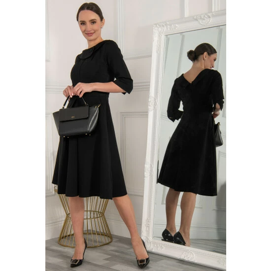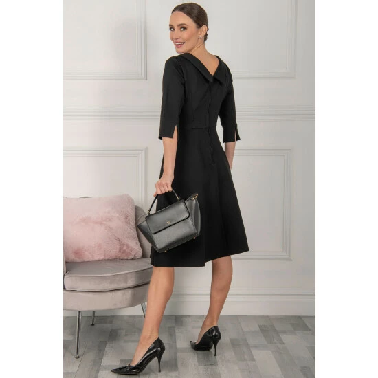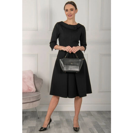 Made from premium Ponte de Roma fabric which is soft and stretchy to the touch. The dress features a beautiful folded button neckline, pockets, short sleeves, and a zipper in the back for easy wear. The inner lining makes this gorgeous dress a pleasure to wear for any wedding or outdoor event. Match it with a small clutch and a pair of strappy heels to complete the look.