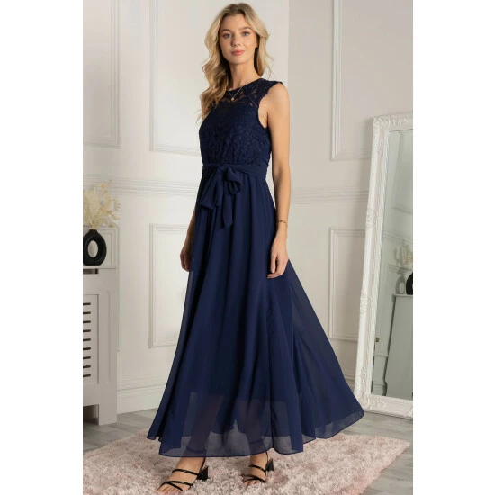 Cut to a flared full length and crafted from soft stretchy lace, this piece is designed with a stunning chiffon maxi skirt over a full lining, while the floor-lengthened cut beautifully elongates your silhouette. It is completed with an elasticated waist with a crossover twist, self-tie belts enable you to showcase an elegant and sophisticated look.