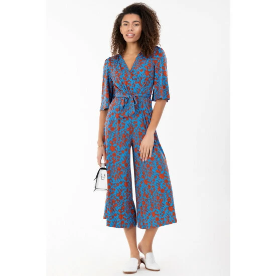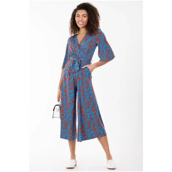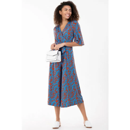 Fashioned from signature soft and stretchy jersey fabric with a bold leaf print all over, this relaxed culotte style jumpsuit from Jolie Moi comes with a belt that can be used to enhance the waist. The cross-over V-neck runs into a ruched elasticated waistband that draws in your silhouette for a form-flattering profile. Finished with flared sleeves and two side pockets for easy wear, pair with your favourite slider sandals or trainers with a biker jacket for an added edge.