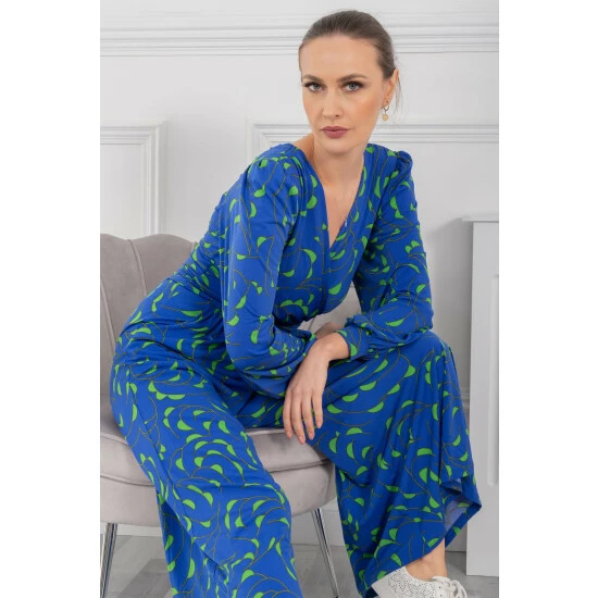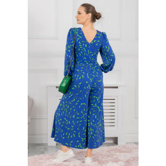 Kept refined with a plunging V-neck and puffy long sleeves, this all-in-one piece by Jolie Moi is a perfect day-to-night wonder. It is shaped to a billowy wide-leg silhouette and is whipped up from a smooth blended jersey fabric. Perfect for brunches, lunches, drinks and dinners.