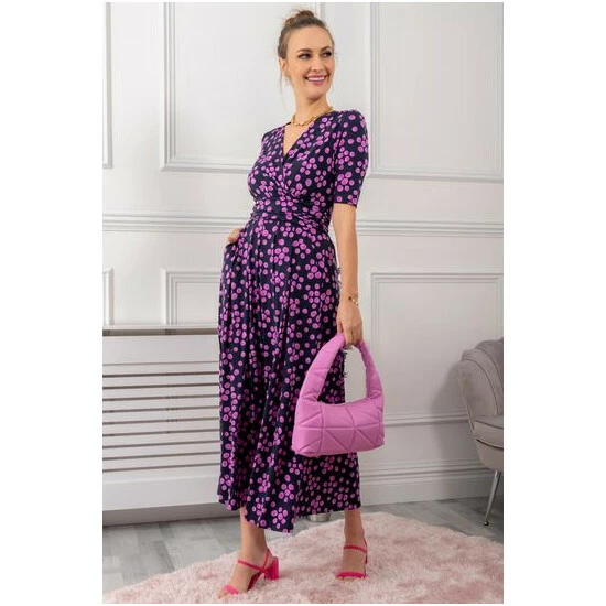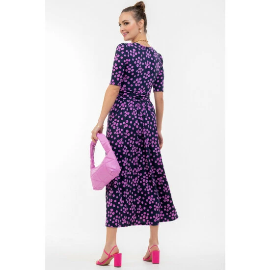 A go-to piece for less formal events, this dress offers a fluid design, which stands out with its all-over eye-cathing print. Equipped with an elasticated waist to ensure a form-flattering silhouette, completed with a flattering V-neckline and short sleeves, it is made from a soft and fluid blended fabric and is a pretty piece you’ll reach for again and again.