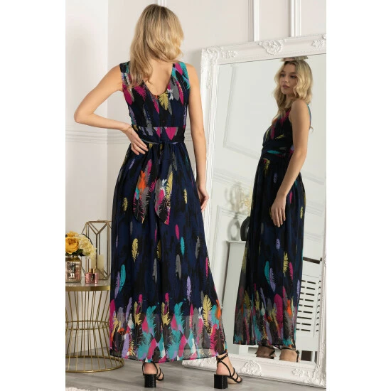 Opt for a statement look with this feather print chiffon dress from Jolie Moi. Fashioned from a lightweight fabric for both ease of wear and fluidity. This piece flares outwards from a tailored waist and boasts a cross-over self-tie waistband, ensuring a form-flattering silhouette.