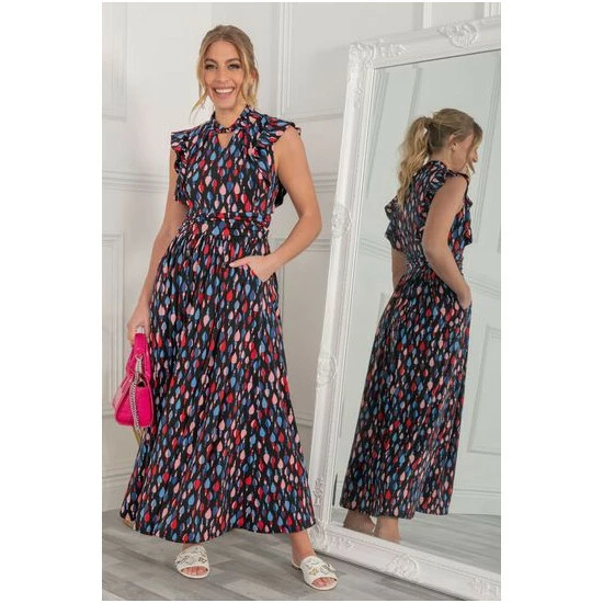 Showcase an elegant bodice and ruffle shoulder detail that we just can’t get enough of. Your go-to print just got better in this Doris dress from Jolie Moi. Made from smooth jersey and cut to a generous fit & flare fit, this printed maxi dress is designed with a smart funnel neck with twisted collar and keyhole cut out detailing at the front. It would be a beautiful choice for a wedding guest outfit or summer socials.