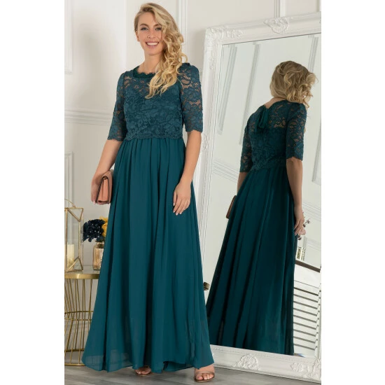 Make those special events unforgettable with this striking Jolie Moi dress. Cut to a flared full length and crafted from soft stretchy lace, this piece is designed with a contrast lace bodice finished with a ribbon tie detailing at the back while the floor-lengthened cut beautifully elongates your silhouette. Completed with concealed back zip and elbow-length sleeves.