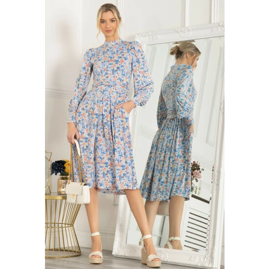 Made from premium jersey fabric for all-day comfort, this midi dress gracefully drapes the figure and features long sleeves, pockets and an exciting floral pattern. The dress is designed with a high funnel neckline that lengthens the look. Perfect for any outdoor occasion which they are sure you will want to wear time and time again.