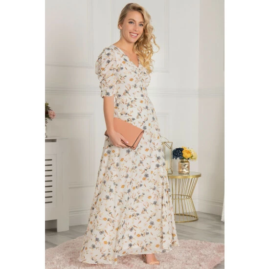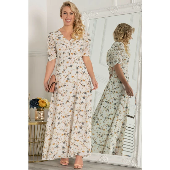 With its flowing, feminine fit and vintage-inspired details, this maxi dress from Jolie Moi are ideal for warm-weather occasion dressing. Crafted from lightweight crepe with an all-over pretty floral print, it features a flattering V-neckline and strategically placed fabric-covered buttons along the front. Its striking open back, exaggerated puff sleeves and front split keep it feeling contemporary.