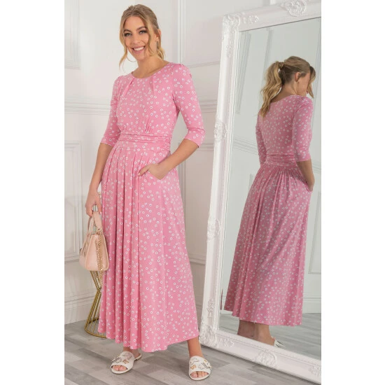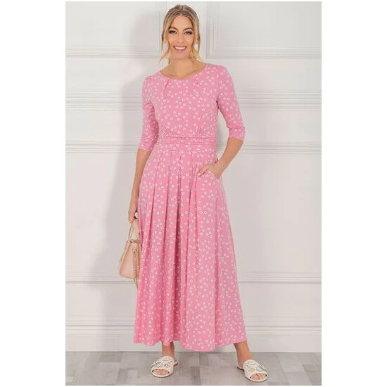 Easy to wear in an A-line silhouette, this maxi dress by Jolie Moi delivers a striking look with its bold spot print. With a simple scoop neck and three-quarter length sleeves, it is comfortable to slip on in a soft jersey blend fabric that is soft-to-touch and comfortable feel and exudes relaxed vibes for warm summer days.