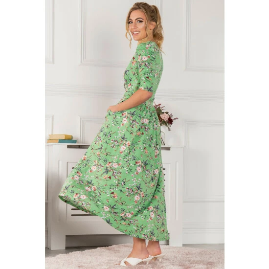Made from premium jersey fabric, this dress from Jolie Moi features a high low hem that drapes and flares out for added movement. Decorated with a soft eye-catching floral print. Equipped with an elasticated ruched waistband to ensure a form-fitting silhouette, completed with a V-neckline, ruched sleeves, and functional pockets. Guaranteed you’ll want to reach for this piece time and time again.