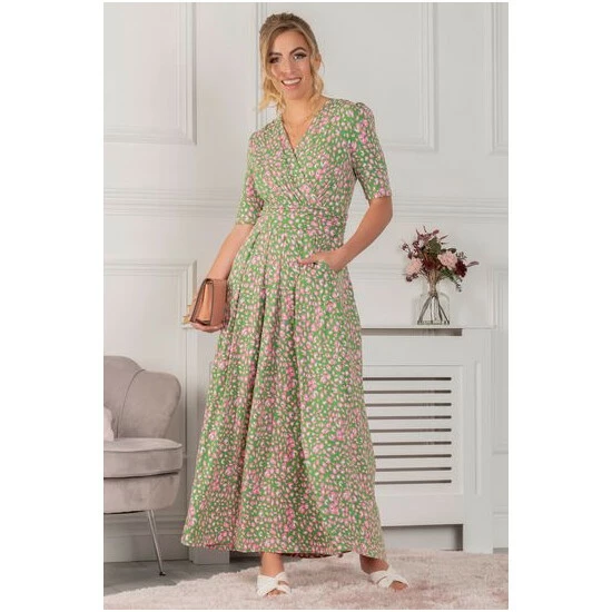 Graceful from top to bottom, this dress from Jolie Moi features a simple but striking animal print which makes it truly distinctive. Versatile with its elegant wrap over V-neckline and short sleeves, it is completed with functional pockets and a ruched elasticated waistband which draws in your silhouette for a form-flattering fit.