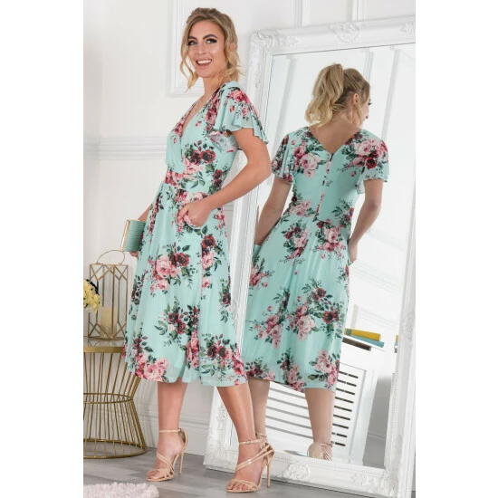 In a flattering fit-and-flare silhouette, this midi dress by Jolie Moi is cut from a premium mesh fabric with full lining. Accentuating the figure with a V-neckline and short angel sleeves, it has an elegant floral pattern design that is perfect that summer wedding or garden party.