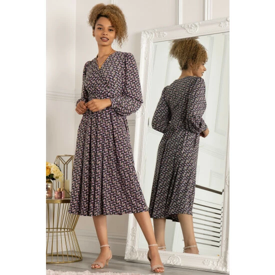 Complementing your shape with a wrap-over front and puff long sleeves, this dress from Jolie Moi will become a real staple in your wardrobe. Flaring out at the hem for added movement, it’s elegant and stylish whilst having a pop of colour and youthful feel thanks to the contrast bold print that runs throughout.