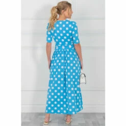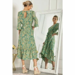 The Maayan midi dress features a folded collar design which accentuates the neck for a more glamorous look. This knee-length dress flares out at the hem for a 50’s aesthetic, features short sleeves, completed with a wrap look.