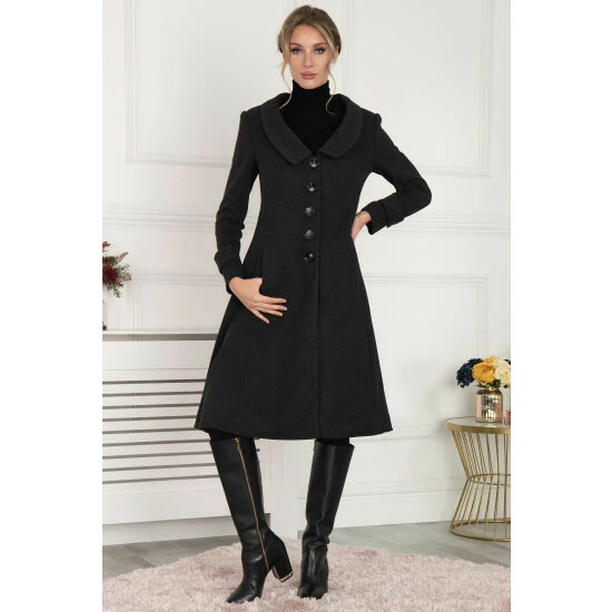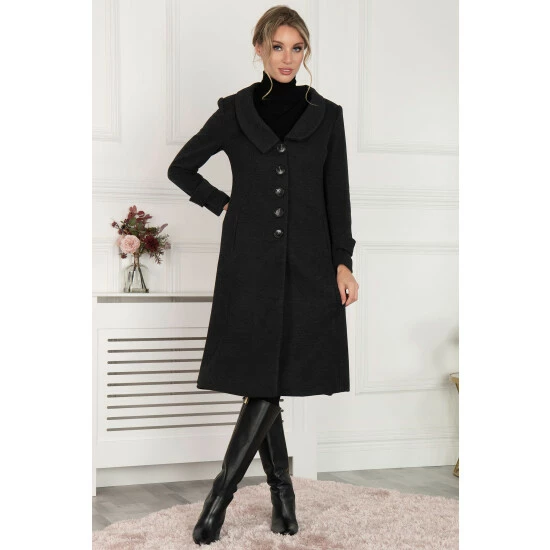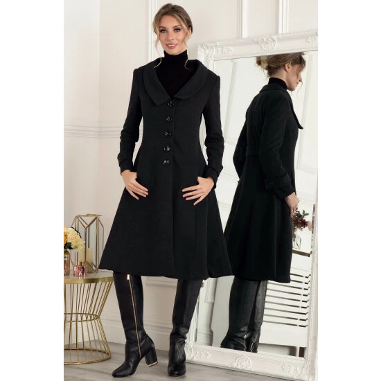 Combining vintage glamour with a modern tailored shape, this Jolie Moi coat flatters the figure for a timelessly 50s silhouette. Bringing a smart edge to your outerwear collection, this piece is framed with a shawl collar and two-toned large buttons down the centre front for fastening. Other style notes for this striking coat include seams over the bust which follow through to flare out at the waist, pockets in side seams, a slit at the back for easy movement and a contrast floral print lining for a sophisticated finish. Pair with court shoes for work and ankle boots for a more casual look.