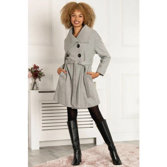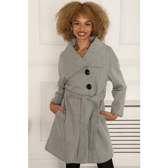 Snug, comfortable and warming, this pretty button detail coat from Jolie Moi is perfect for the autumn-winter season. Featuring a double-breasted front, a tie at the waist and long sleeves, this sophisticated coat has been made from a mixed blend of soft fabrics. It’s completed with a collar neck and lining.