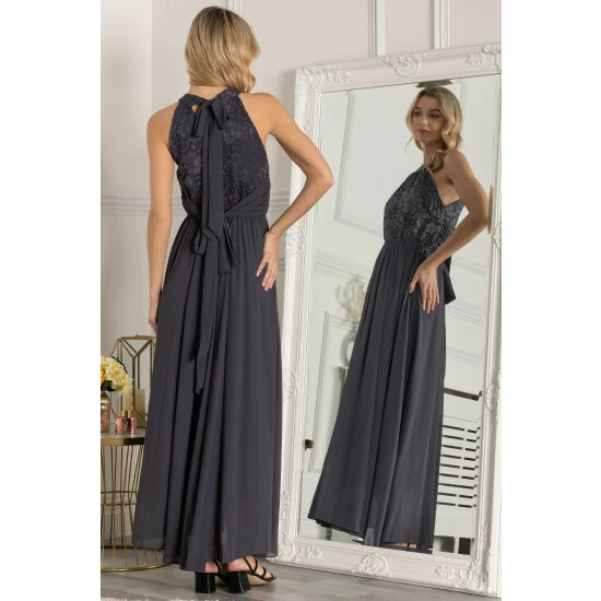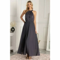 Make those special events unforgettable with this striking Jolie Moi dress. Cut to a flared full length and crafted from soft stretchy lace, this piece is designed with a stunning chiffon maxi skirt over a full lining, while the floor-lengthened cut beautifully elongates your silhouette. It is completed with an elegant halterneck with a crossover twist tie belt, self-tie belts enable you to showcase an elegant and sophisticated look. Pair with high heels and a clutch bag to create a gorgeous ensemble.