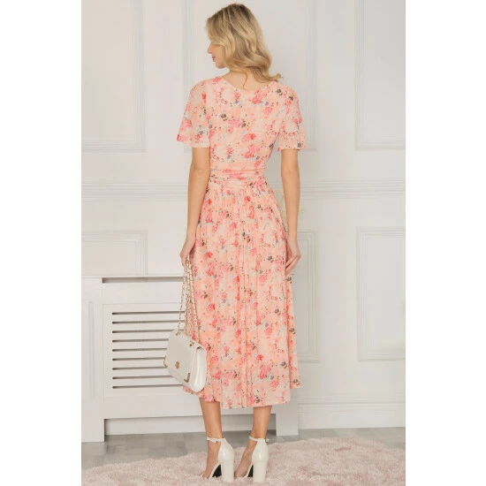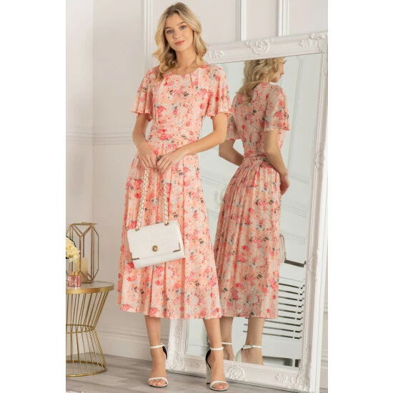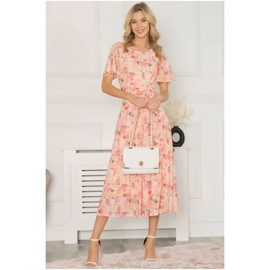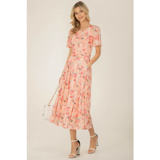 In a fit and flare silhouette that swings out at the skirt, this midi dress by Jolie Moi is printed with fresh florals throughout. With a traditional round neckline and short cap sleeves, it is your go-to for any formal soirée.