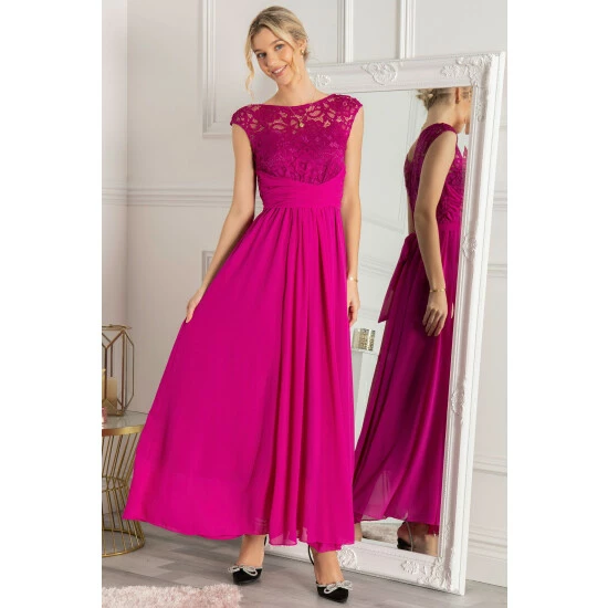 Make those special events unforgettable with this striking Jolie Moi dress. Cut to a flared full length and crafted from soft stretchy lace, this piece is designed with a stunning chiffon maxi skirt over a full lining, while the floor-lengthened cut beautifully elongates your silhouette. It is completed with an elasticated waist with cross-over twist, and self-tie belts enable you to showcase an elegant and sophisticated look.
