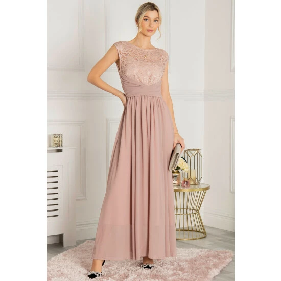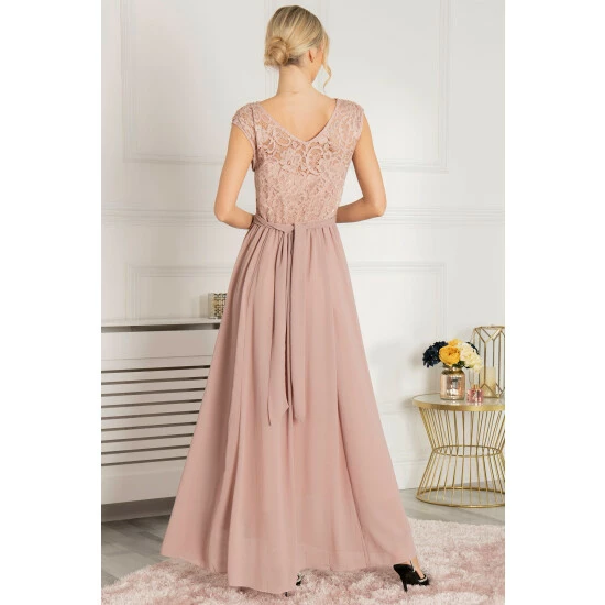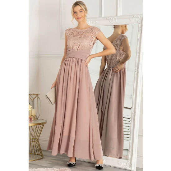 Make those special events unforgettable with this striking Jolie Moi dress. Cut to a flared full length and crafted from soft stretchy lace, this piece is designed with a stunning chiffon maxi skirt over a full lining, while the floor-lengthened cut beautifully elongates your silhouette. It is completed with an elasticated waist with cross-over twist, and self-tie belts enable you to showcase an elegant and sophisticated look.