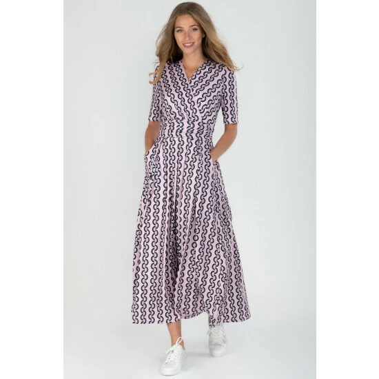 With a refined wrap front and flared hem, this maxi dress by Jolie Moi is brought to life with a floral print. Equipped with an elasticated waist to ensure a form-flattering silhouette, completed with a flattering V-neckline and short sleeves, it is made from a soft and fluid blended fabric and is a pretty piece you’ll reach for again and again.
