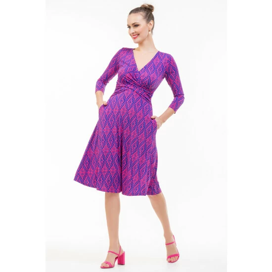 In a timeless fit and flare shape with a gathered detail at the waist, this shift dress by Jolie Moi is decorated with an abstract geometric print running throughout. Smartening your look with its deep V-neckline and three-quarter length sleeves, this piece will layer neatly under tailored jackets for a polished ensemble.