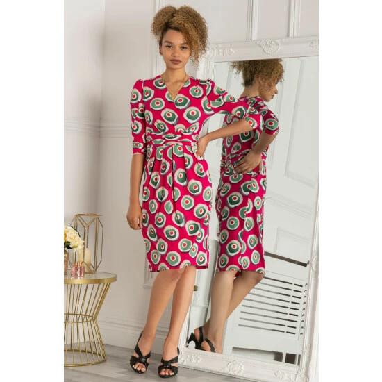 Choose vibrant prints for seasonal events with this dress from Jolie Moi. Made from smooth jersey, this eye-catching piece boasts a unique pattern, it features a wrap front and pleated midi length skirt. Lined through the bodice, this piece pulls on for easy wear. Elevate the look with strap-heeled sandals and a box clutch bag.
