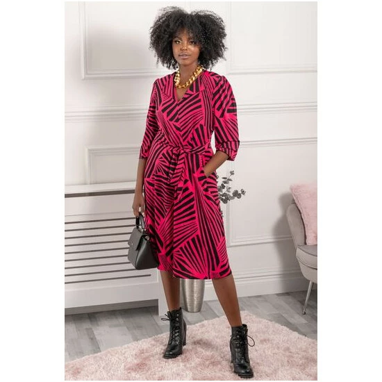 Framing your favourite neckline with its V-neck and 3/4th sleeve design. The revere midi dress by Jolie Moi has a flared midi hem for better movement and all-day comfort. It features a geometric pattern. Perfect for parties or a night out in the city.
