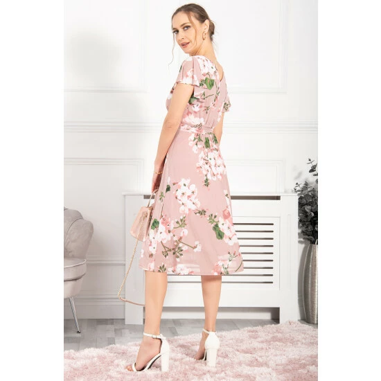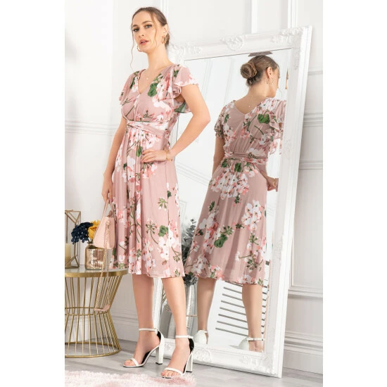 Fashioned from a lightweight mesh, the ruched detail around the waist adds a beautiful finishing touch. The body of this Jolie Moi dress is fully lined with sheer ruffle cap sleeves. Flaring out at the hem for added movement, it is a perfect dress that makes an ideal choice for a guest at wedding.