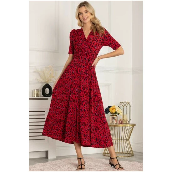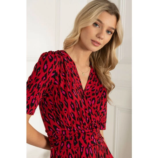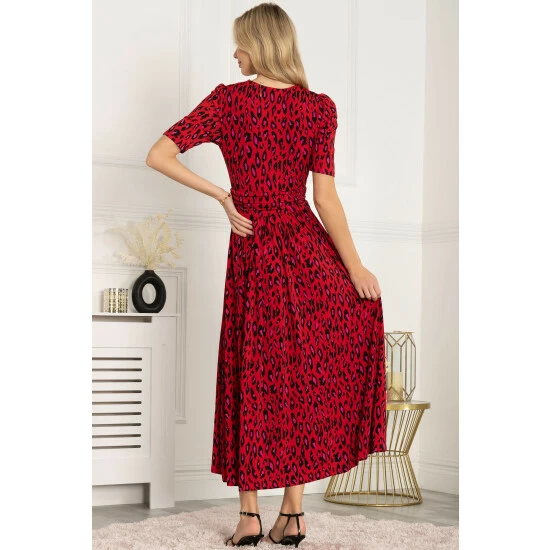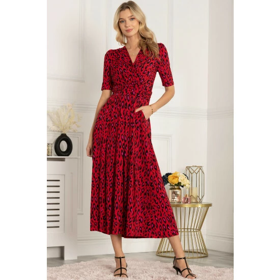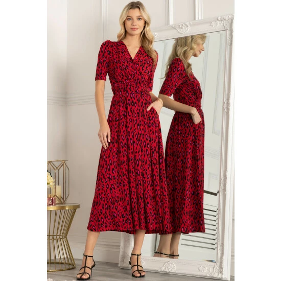 This dress from Jolie Moi makes an impact with its striking animal print and flowing maxi hem. Cut from soft and stretchy jersey fabric for long-lasting comfort, the cross-over V-neck runs into a ruched elasticated waistband that draws in your silhouette for a form-flattering shape. Finished with side pockets for easy wear, pair with anything from canvas trainers to sleek point-toe heels.