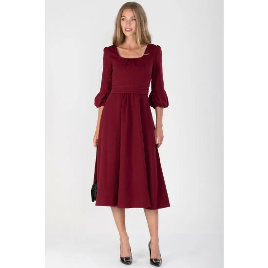 Carve an elegant shape in this Flare Midi Dress by Jolie Moi. Crafted from a medium-weight textured fabric with a hint of stretch, this piece features a flattering fit and flare cut and boasts three-quarter length bell sleeves and a distinctive scoop neckline, completed with a concealed centre back zip fastening, it falls to an on-trend midi length, fully lined and it is finished with side pockets for those essential items.