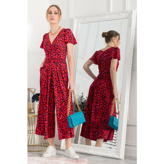 Jump start your new season wardrobe with this chic and versatile jumpsuit from Jolie Moi. This all-in-one piece is a perfect day-to-night wonder. Striking prints with a classic wrap shape and cut in a cropped silhouette creates the perfect smart/casual balance. This jersey culotte jumpsuit cinches at the waist with a self-tie belt and its V-neck can be easily styled with your favourite pendant. Dress up with block heels or down with white trainers.