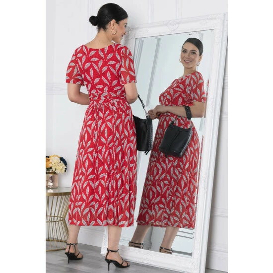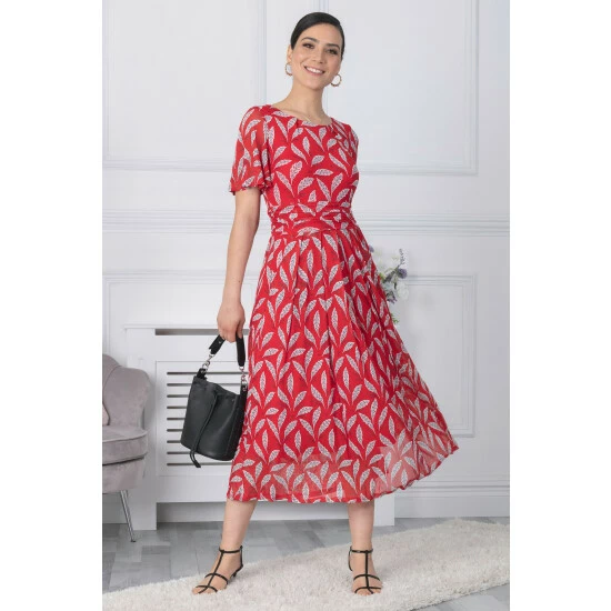 Flaring out at the hem for added movement, this midi dress by Jolie Moi boasts a leafy flourish for added appeal. Framed with a round neckline and short sleeves, it is ready for whatever fills your diary this summer.