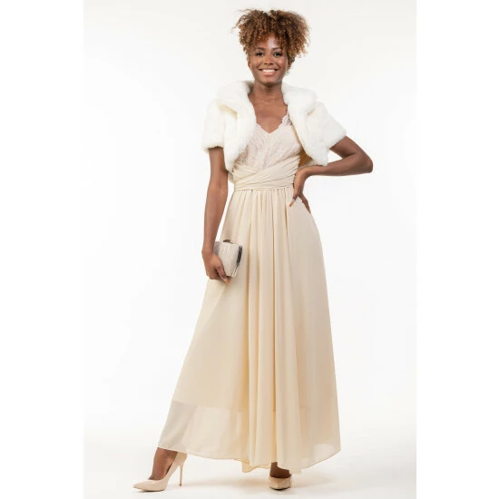 Crafted to a fluid, sweeping floor-length cut, this stunning dress from Jolie Moi is designed in a flattering fit and flare style. It features a contrasting lace bodice with a scalloped V-neckline, a flared maxi skirt, and a crossover tie around the waist. Lined through the bodice, this piece pulls on for easy wear. Elevate the look with strap-heeled sandals and a box clutch bag.